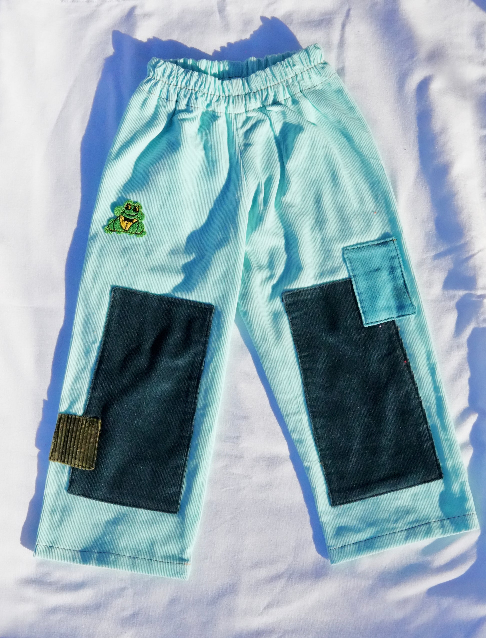 Patchy corduroy pants with a cutie vintage patch. Made with reclaimed and vintage fabric.
