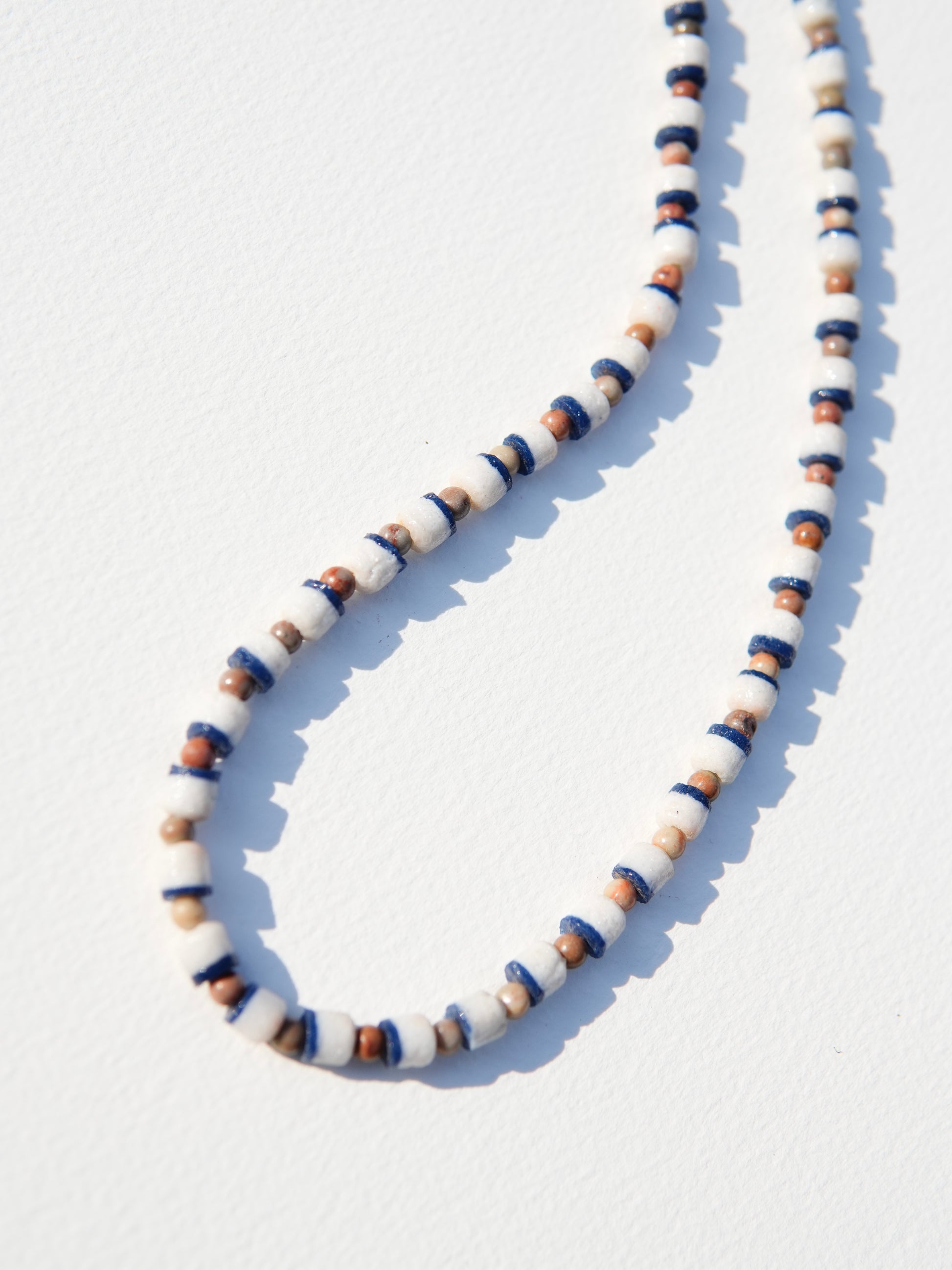 A necklace patterned with contrasting stones and glass. Featuring tiger eye stone and cat eye glass beads. OOAK